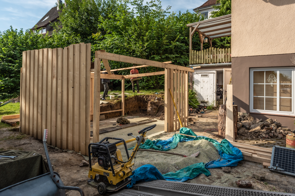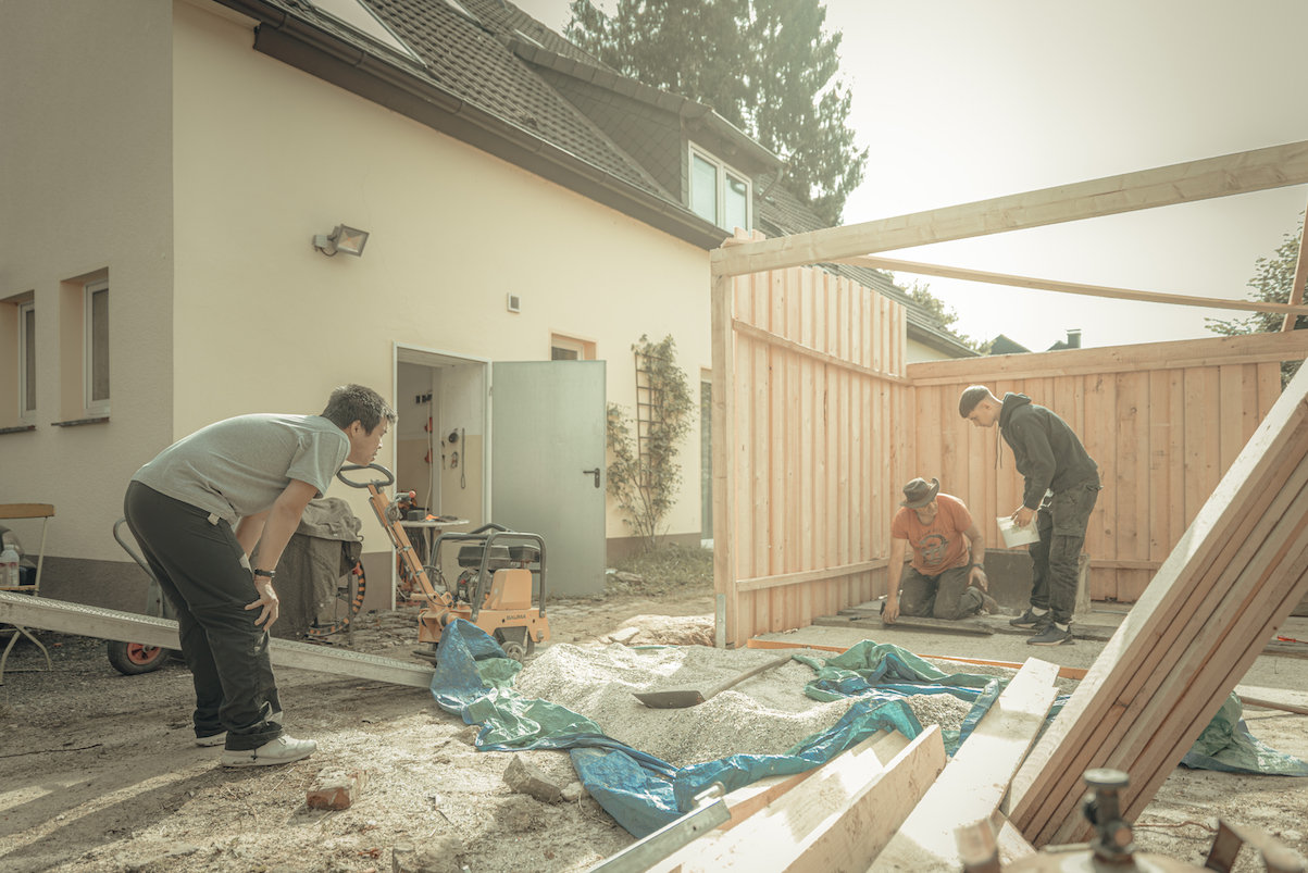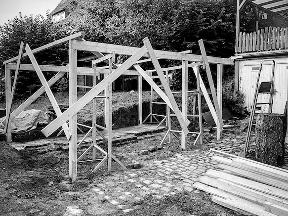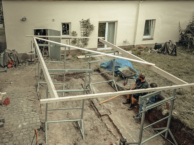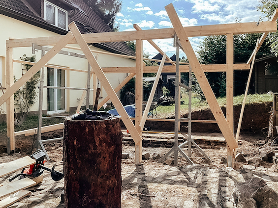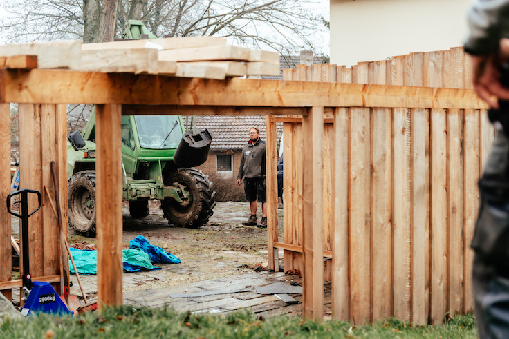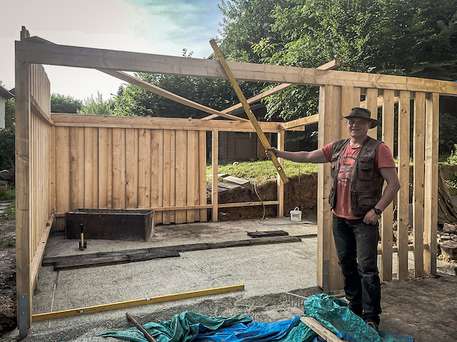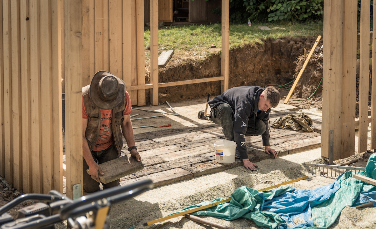 Phase 2: Betonboden giessen und Holzgerüst aufgebauen
